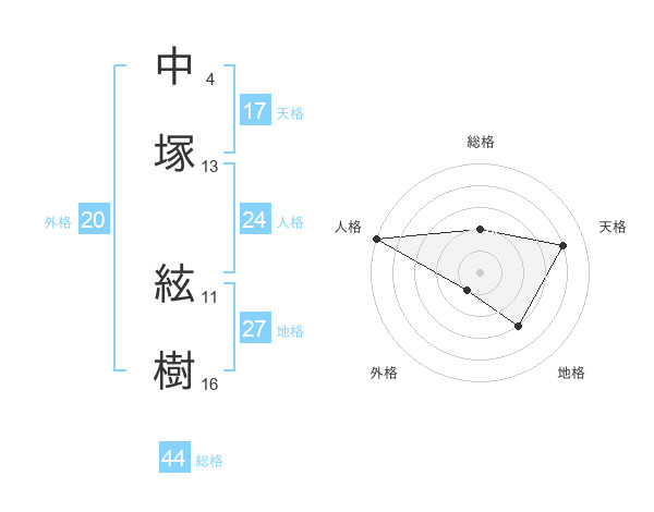 中塚 絃樹さんを姓名の画数から五運を鑑定