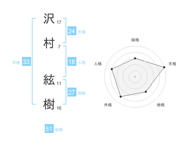 沢村 絃樹さんを姓名の画数から五運を鑑定