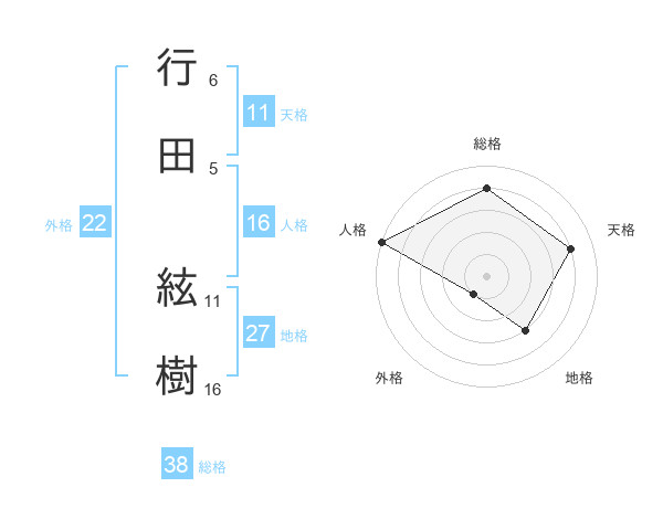 行田 絃樹さんの総格は38画の4点!