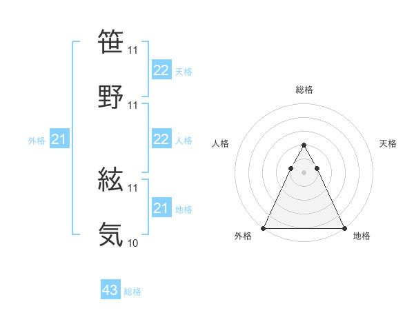 笹野 絃気さんの外格は21画の5点!