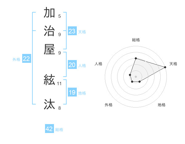 加治屋 絃汰さんを姓名の画数から五運を鑑定