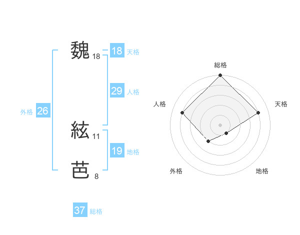 魏 絃芭さんの総格は37画の5点!