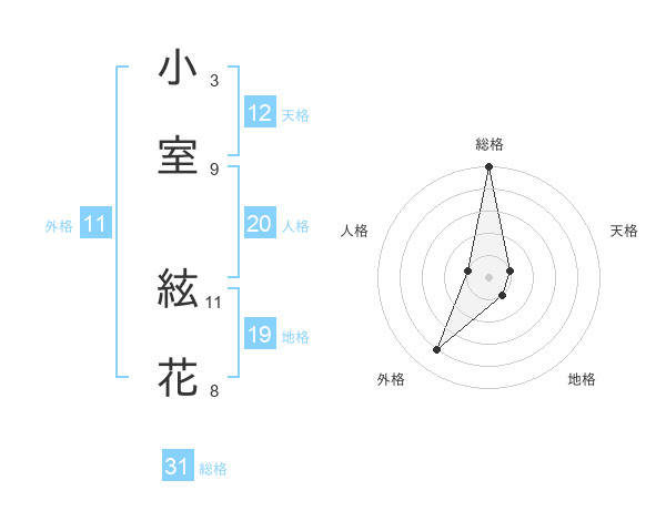 小室 絃花さんの総格は31画の5点!