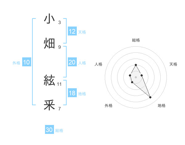 小畑 絃釆さんを姓名の画数から五運を鑑定