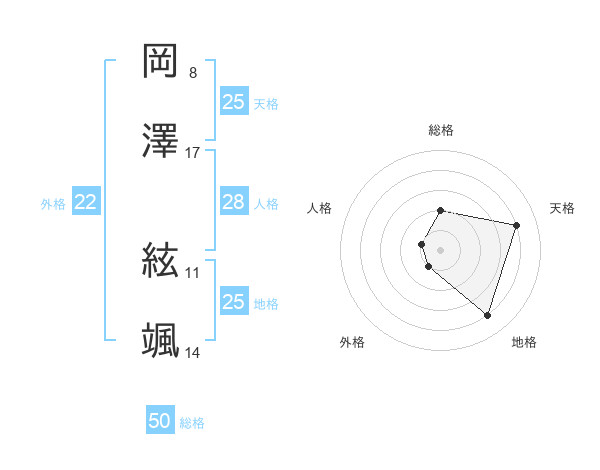岡澤 絃颯さんの天格は25画の4点!
