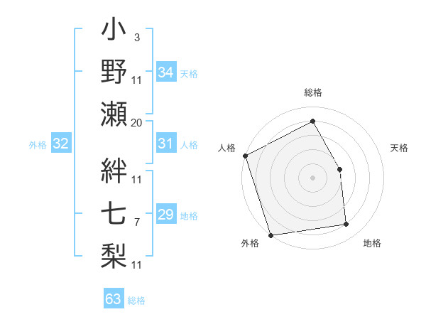 小野瀬 絆七梨さんを姓名の画数から五運を鑑定