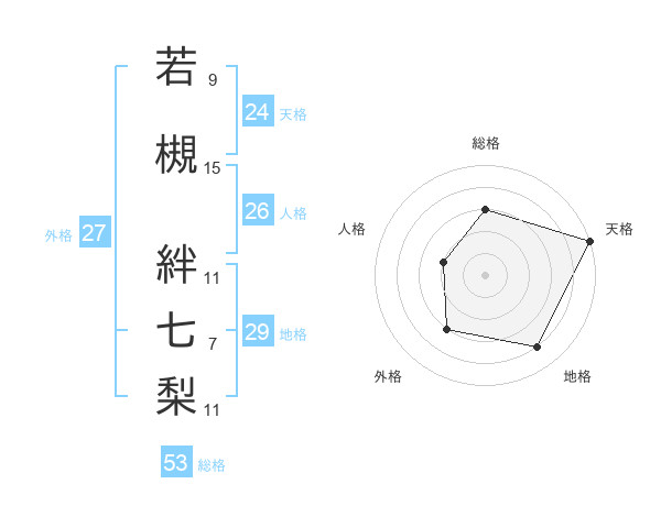 若槻 絆七梨さんの総格は53画の3点!