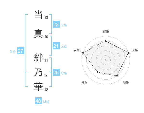 当真 絆乃華さんを姓名の画数から五運を鑑定