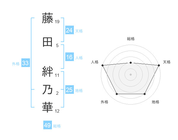 藤田 絆乃華さんの天格は24画の5点!