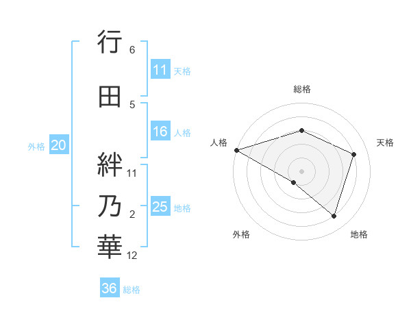 行田 絆乃華さんを姓名の画数から五運を鑑定