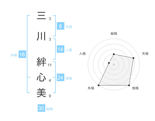 三川 絆心美さんの総格は30画の2点!