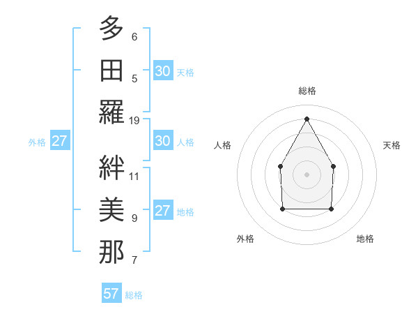 多田羅 絆美那さんの総格は57画の4点!