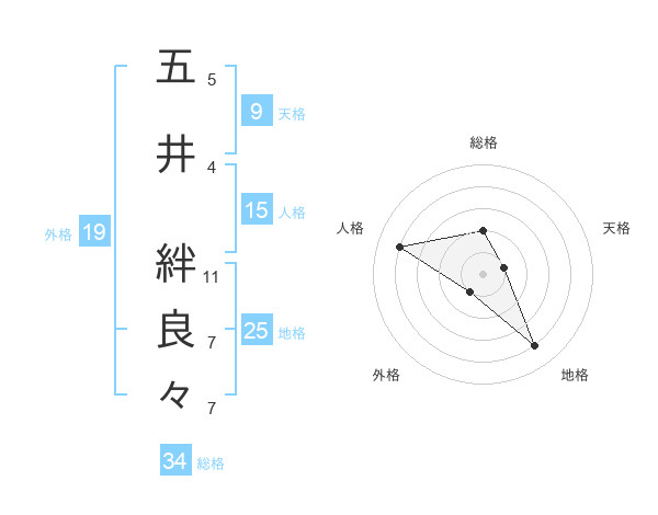 五井 絆良々さんを姓名の画数から五運を鑑定