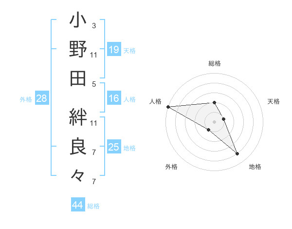 小野田 絆良々さんを姓名の画数から五運を鑑定