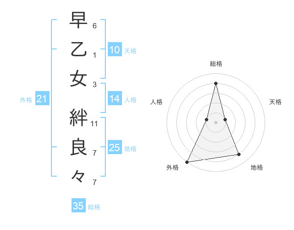 早乙女 絆良々さんを姓名の画数から五運を鑑定