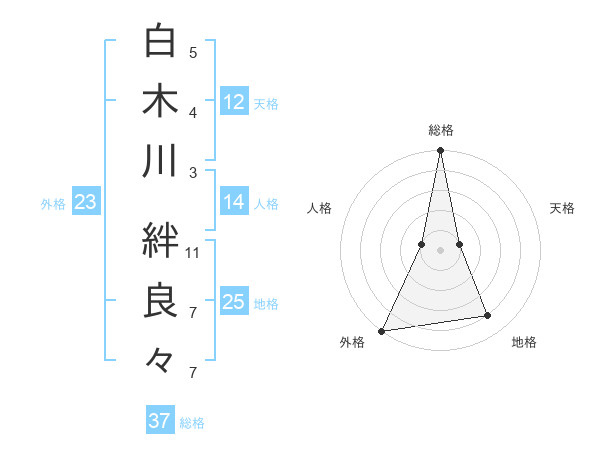 白木川 絆良々さんの総格は37画の5点!