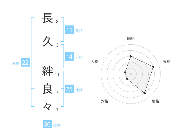 長久 絆良々さんを姓名の画数から五運を鑑定