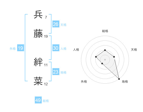 兵藤 絆菜さんの総格は49画の2点!