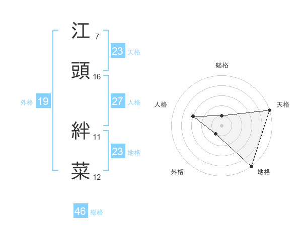 江頭 絆菜さんを姓名の画数から五運を鑑定