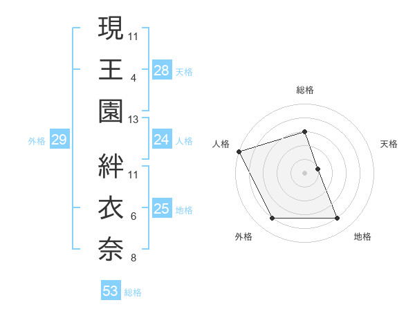 現王園 絆衣奈さんを姓名の画数から五運を鑑定