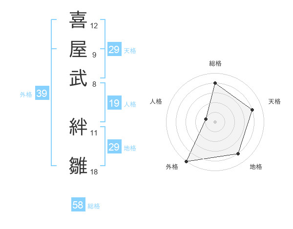 喜屋武 絆雛さんの外格は39画の5点