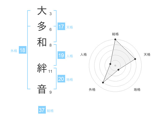 大多和 絆音さんを姓名の画数から五運を鑑定