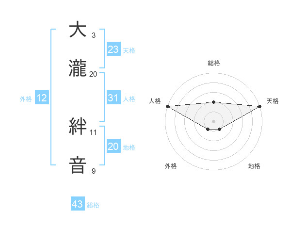 大瀧 絆音さんの天格は23画の5点!