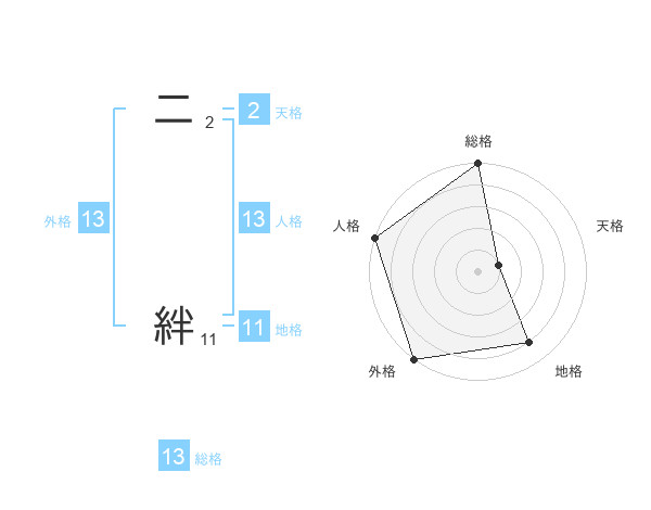 二 絆さんの外格は13画の5点!