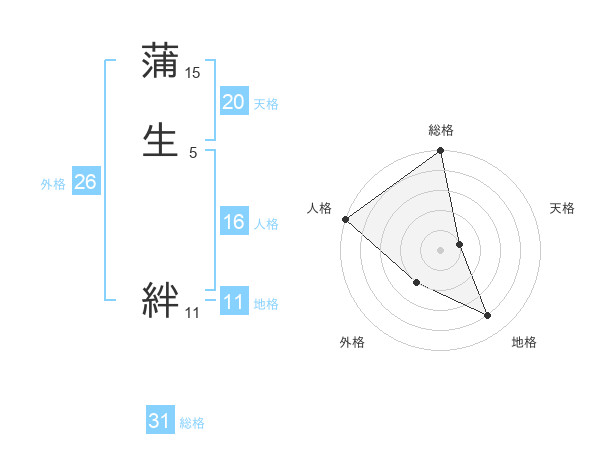 蒲生 絆さんの総格は31画の5点!