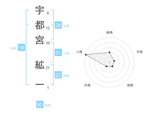 宇都宮 絋一さんを姓名の画数から五運を鑑定