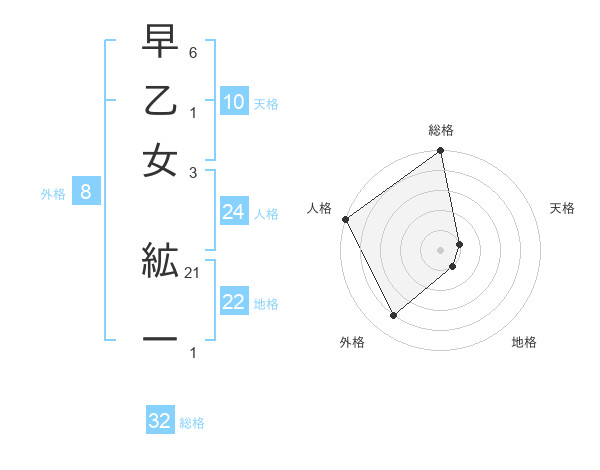 早乙女 絋一さんを姓名の画数から五運を鑑定