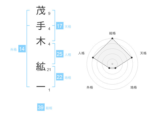 茂手木 絋一さんを姓名の画数から五運を鑑定