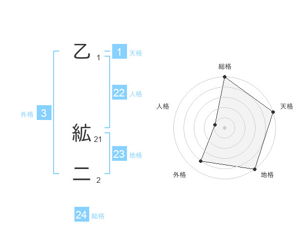 乙 絋二さんの総格は24画の5点!