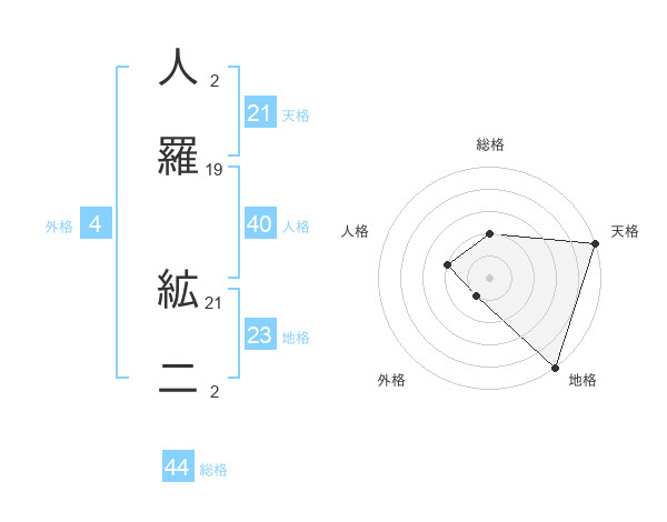 人羅 絋二さんの総格は44画の2点!