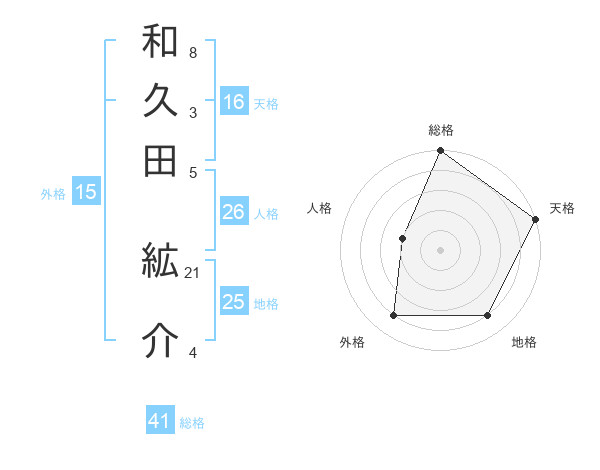和久田 絋介さんの天格は16画の5点!