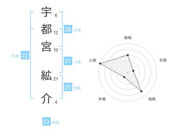 宇都宮 絋介さんを姓名の画数から五運を鑑定