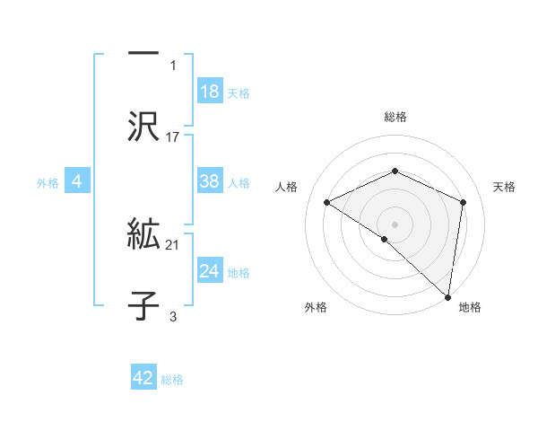 一沢 絋子さんを姓名の画数から五運を鑑定