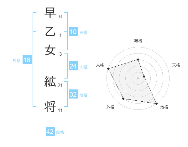 早乙女 絋将さんの総格は42画の3点!