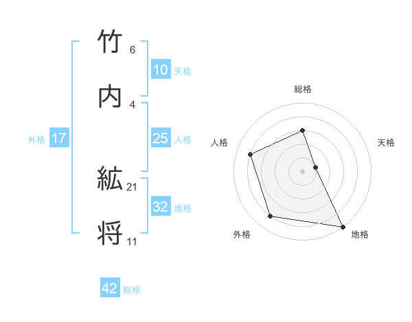 竹内 絋将さんの総格は42画の3点!