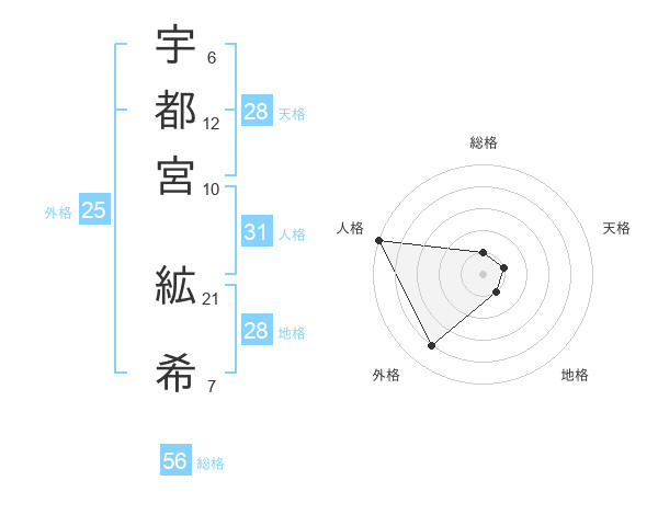 宇都宮 絋希さんを姓名の画数から五運を鑑定