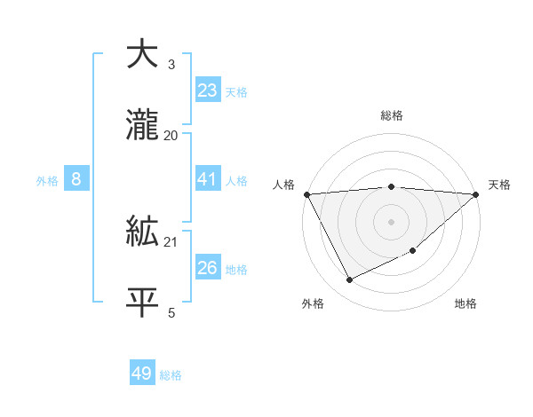大瀧 絋平さんを姓名の画数から五運を鑑定