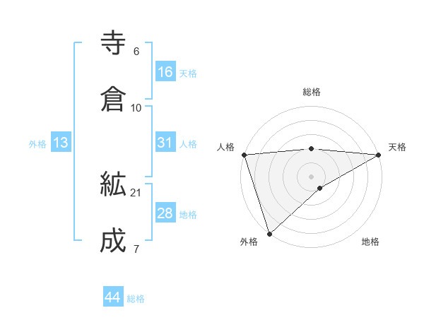 寺倉 絋成さんを姓名の画数から五運を鑑定
