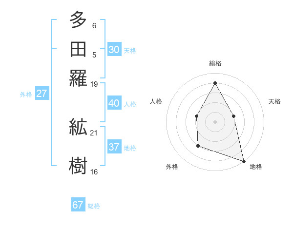 多田羅 絋樹さんを姓名の画数から五運を鑑定