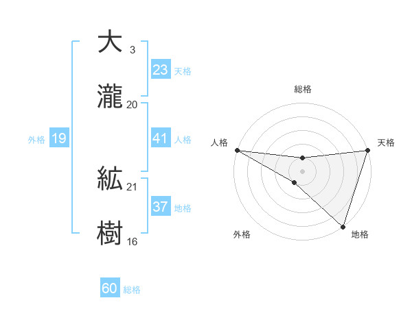 大瀧 絋樹さんを姓名の画数から五運を鑑定