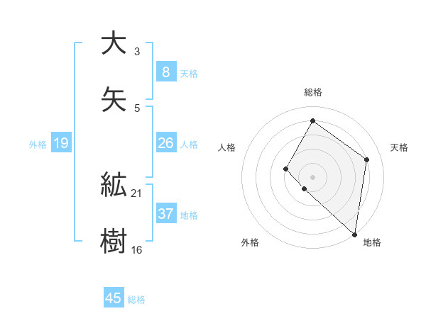 大矢 絋樹さんを姓名の画数から五運を鑑定