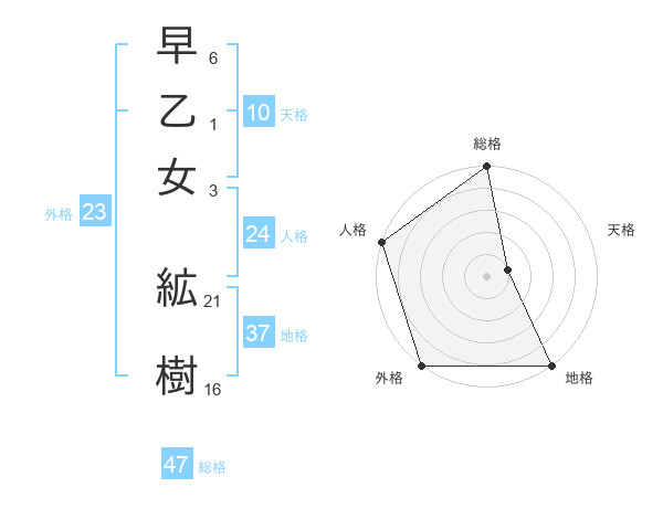 早乙女 絋樹さんを姓名の画数から五運を鑑定