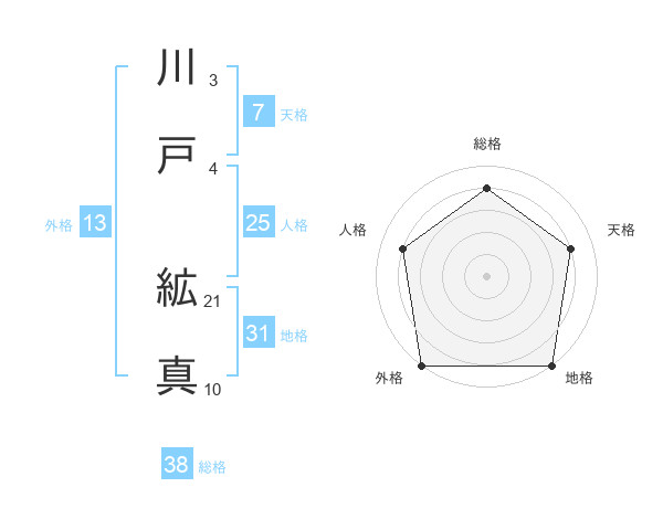 川戸 絋真さんの総格は38画の4点!