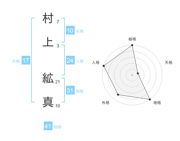 村上 絋真さんの地格は31画の5点!