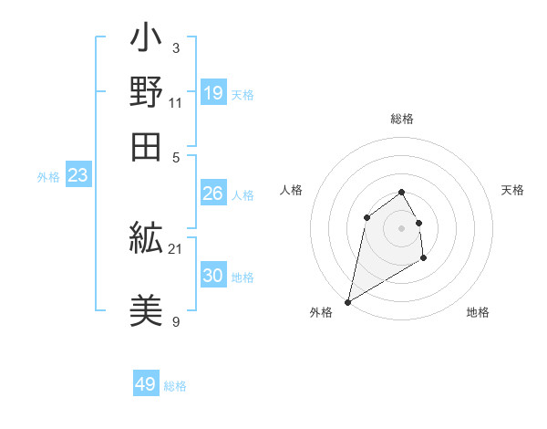 小野田 絋美さんを姓名の画数から五運を鑑定