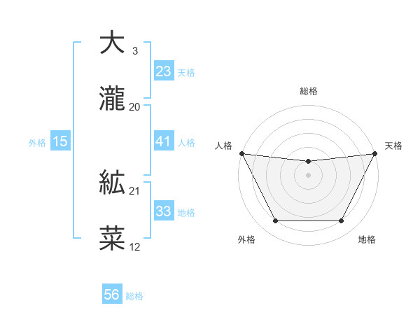 大瀧 絋菜さんを姓名の画数から五運を鑑定